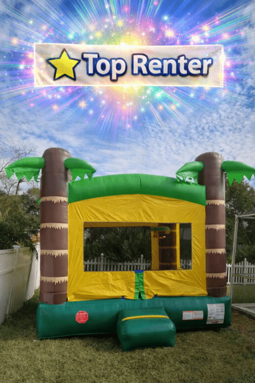 A bright, island-themed inflatable with palm trees and vibrant colors, perfect for hours of jumping fun and bringing a tropical vibe to any party. Turn your party into a tropical getaway with our bright, clean tropical palm tree bounce house! This isn't just any bounce house - it's your ticket to hours of non-stop smiles under the island sun (without leaving the backyard). Perfect for birthdays, summer parties & school events!