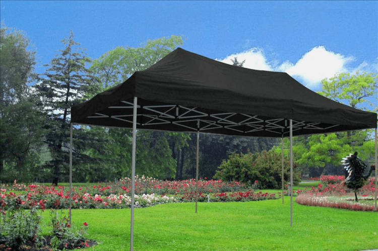 A sleek black 10ft x 20ft popup tent that pops up in minutes to create a roomy, weather‑protected space, perfect for vendor booths, food stations, seating areas, or event staging; portable, easy to secure, and folds down for simple transport. Keeps guest cool, comfortable, and covered in any weather, it's not just practical, it adds a touch of class to your set up!